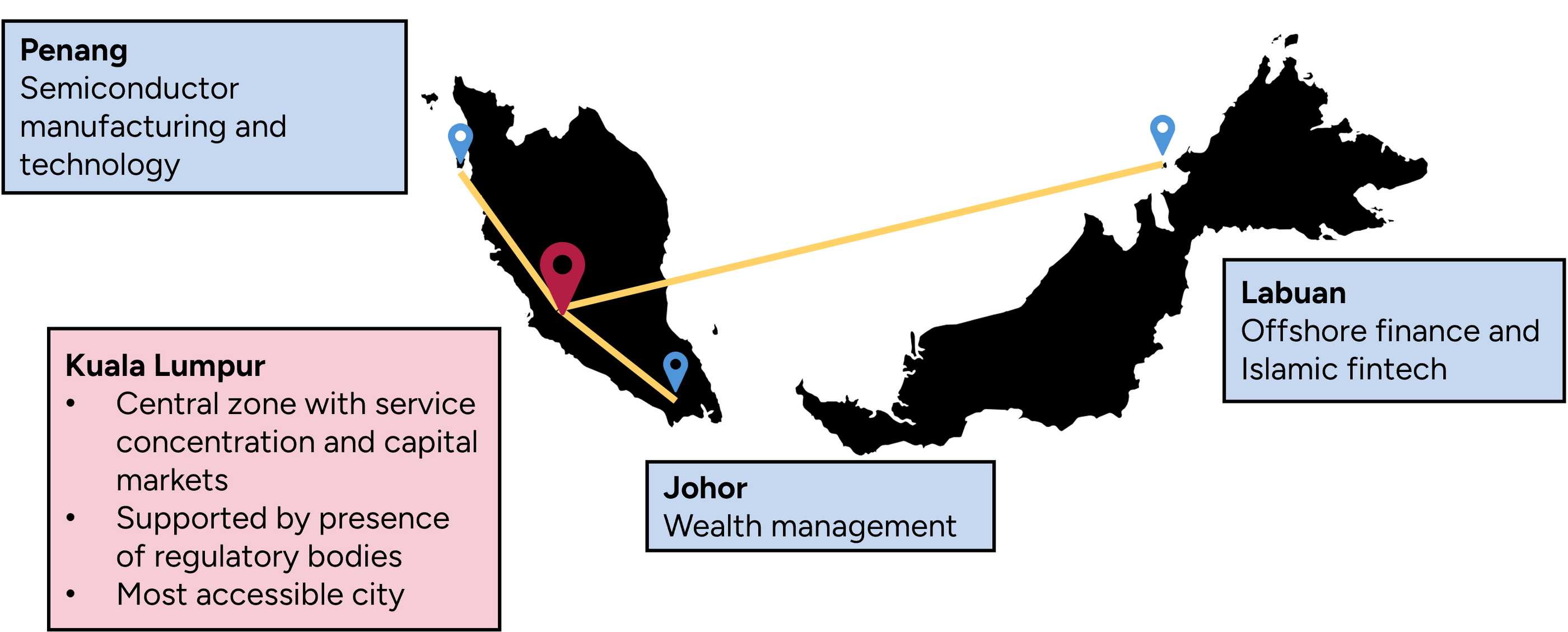 The southern state of Johor provides wealth management and family office services, which can be further differentiated by leaning into the overall Islamic finance IFC strategy from Kuala Lumpur.